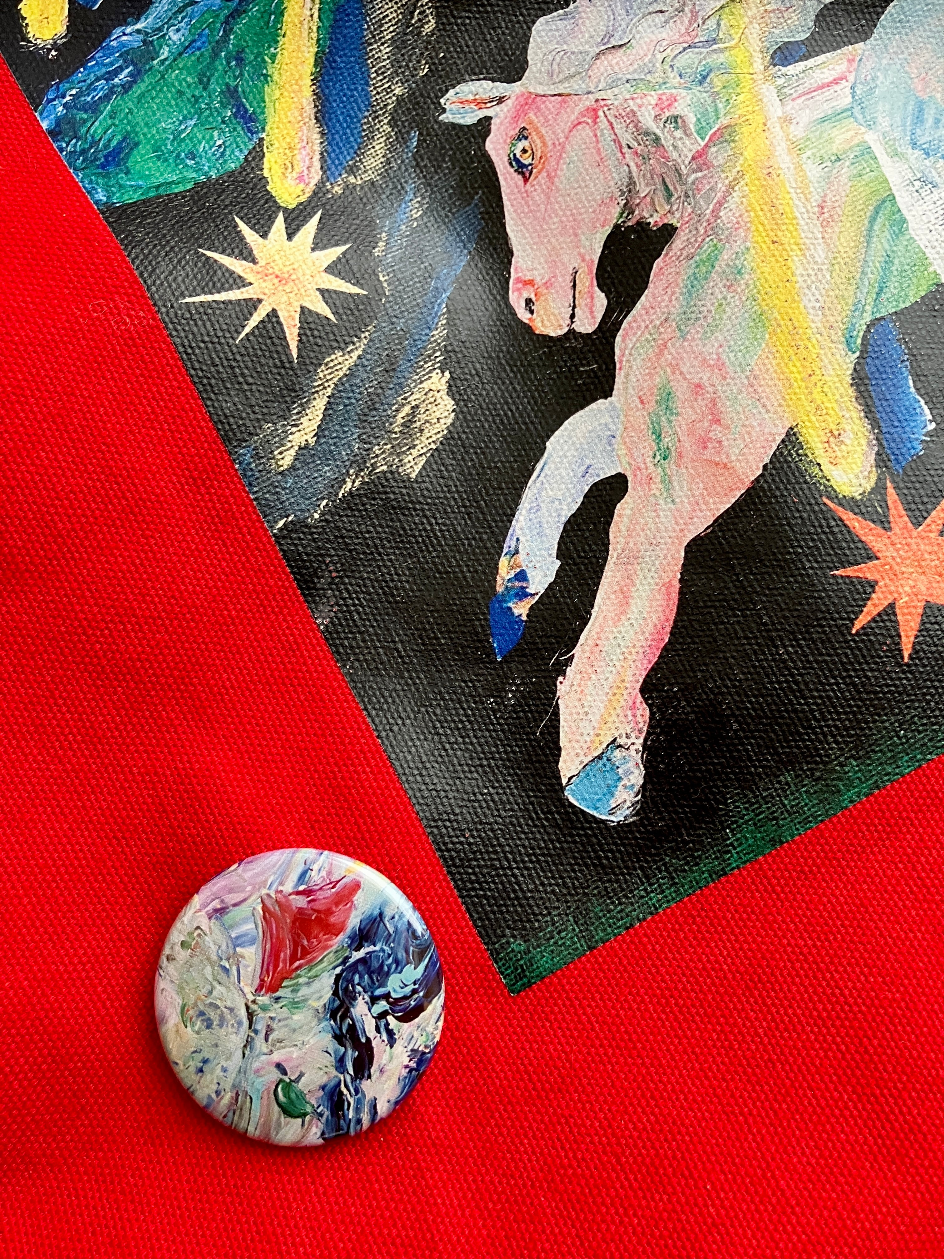 2025年11月9日に降りて来たビジョン “立ち上がる亀“。その日ライブペイントで描いた絵の一部を38mmサイズの缶バッジに仕上げました。この亀が2026年のラッキーアイテムになるというメッセージが別の日に降りて来たため、急遽追加の特典として加えることにいたしました。みなさまの2026年がワクワクや驚き、喜び、楽しみ、幸せに満ちた面白い年になりますように!