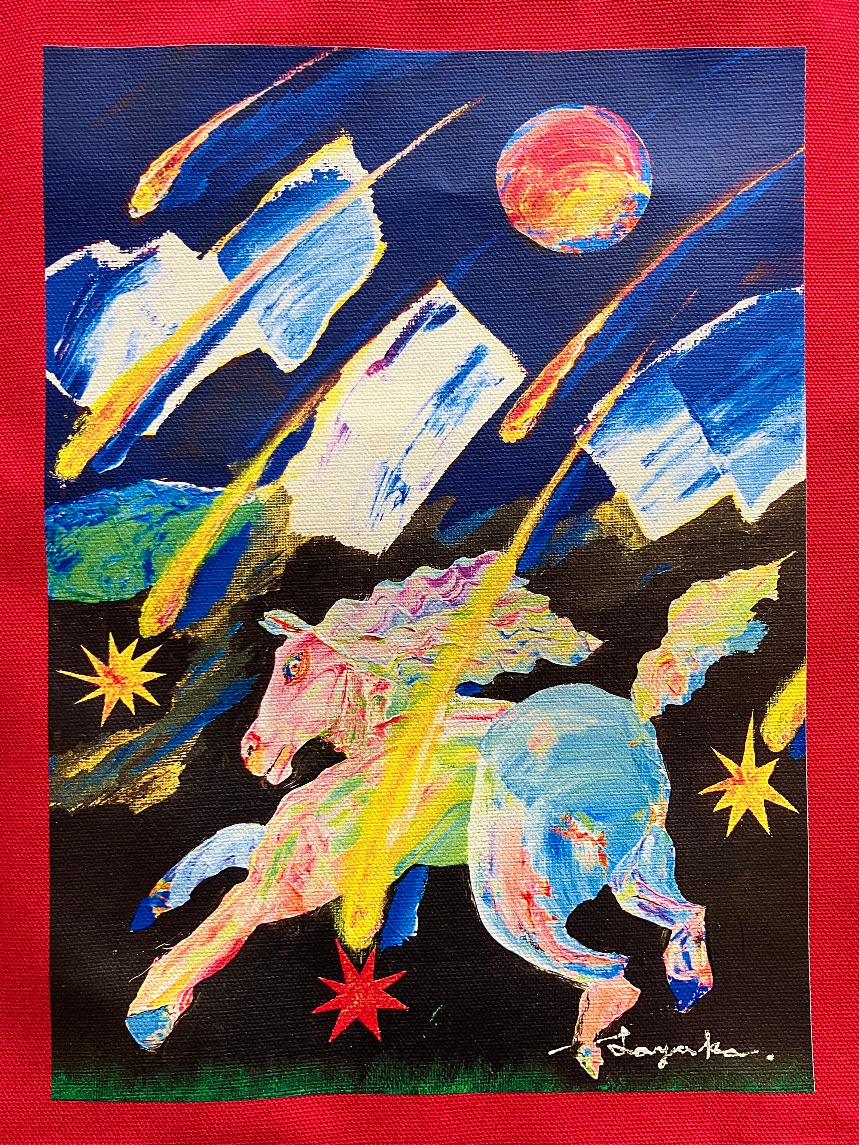 12ozのキャンバストートバッグにアート作品『先駆者』をプリント